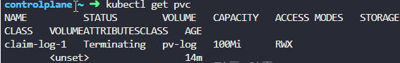 kubectl delete pvc claim-log-1