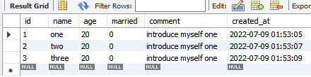 insert into nodejs.users (name, age, married, comment) values ('one', 20, 0, 'introduce myself one');