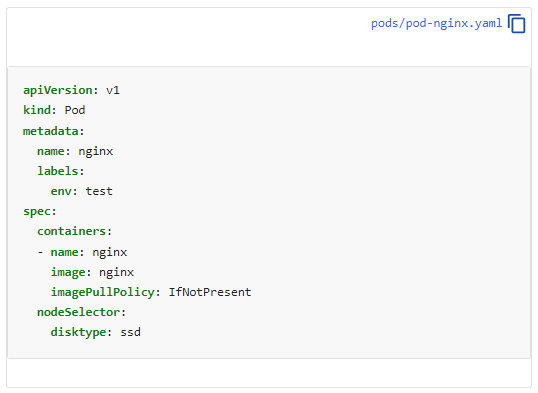 - nodeSelector와 nodeName은 pod의 spec필드 안에 넣어함
