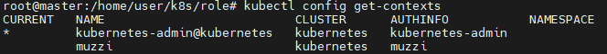 kubectl config set-context muzzi --cluster=kubernetes --user=muzzi