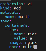 kubectl run multi --image nginx --env tier=a $samp > multi.yaml