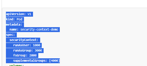 A security context defines privilege and access control settings for a Pod or Container. Security context settings include, but are not limited to: Discretionary Access Control: Permission to access an object, like a file, is based on user ID (UID) and gro