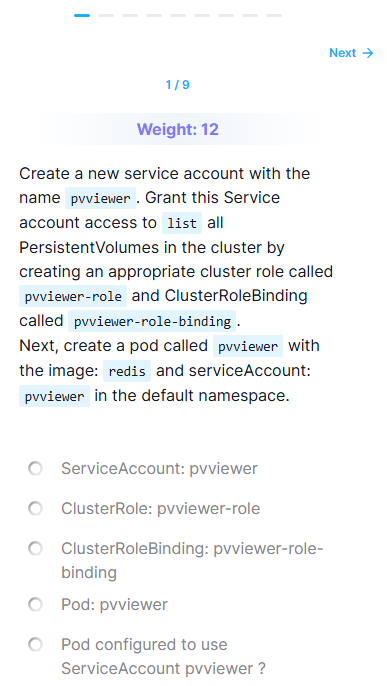 이 서비스 어카운트를 클러스터롤과 연결시키라는 문제임.