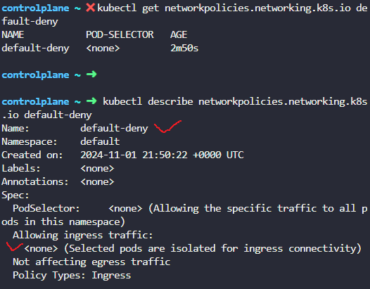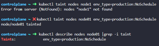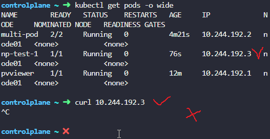pod를 만들어보니 node01이 아닌 controlplane 노드에 잘 만들어진걸 볼 수 있음.