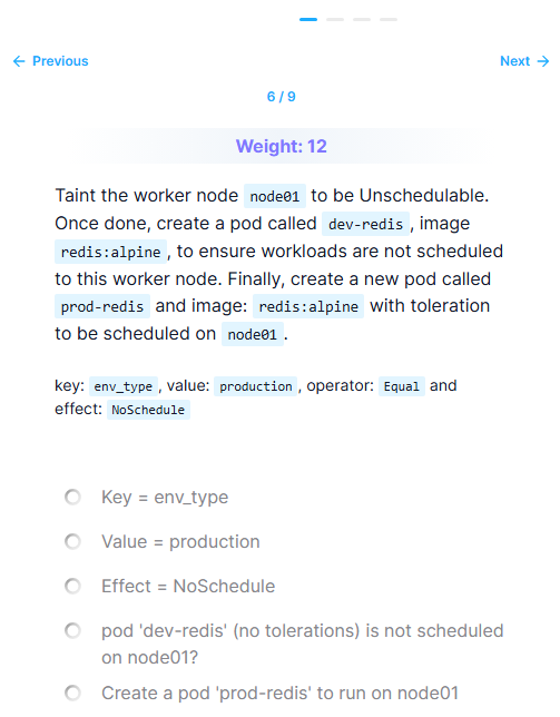 문제에서 원하는대로 dev-redis는 node01에 안생겼고