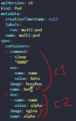 kubectl run multi-pod --image busybox --env name=beta $samp --command -- sleep 4800 > 3.yaml