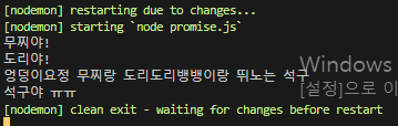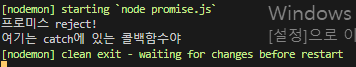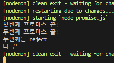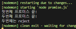 이렇단다. 사실 두번째 출력은 fulfilled상태인데 nodejs라서 저렇게뜸