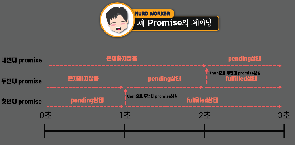 then뒤에 있는 콜백함수는 이전 promise가 pending상태에서 fulfilled상태가 될때까지 기다렸다가 실행된다는거임!!