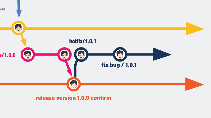 현재 이런 상태이다. 팀장은 release/1.0.0브랜치에서 최종 커밋을 하였다.