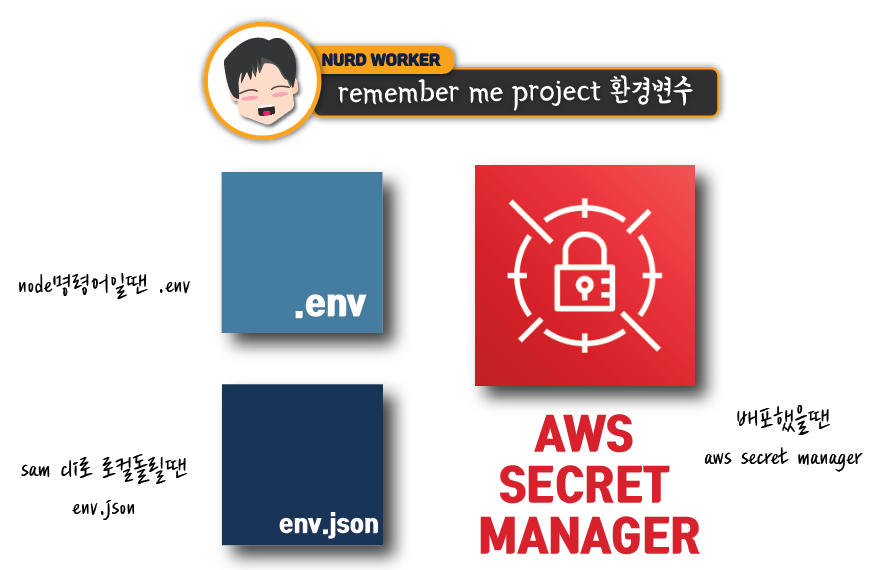 위에서 말씀드렸듯이 sam cli를 사용했어서 이번 remember me 프로젝트는 환경변수를 세가지로 나눴는데요.