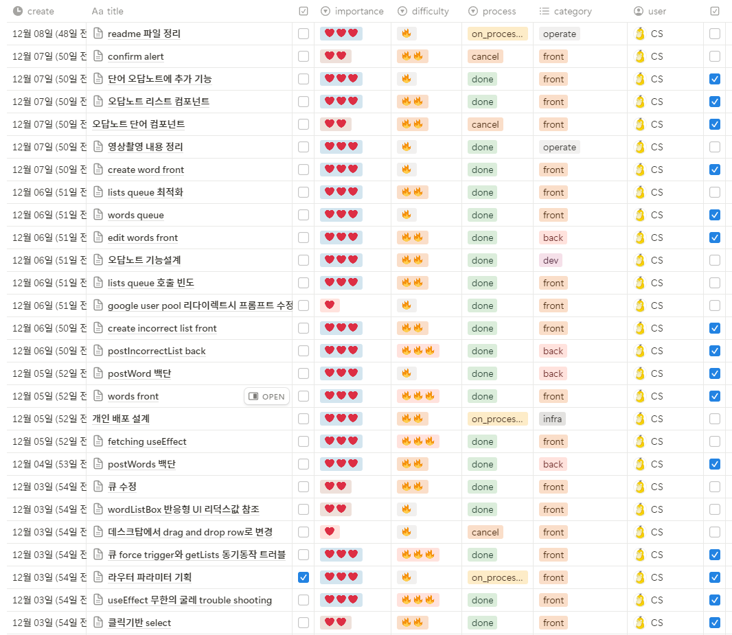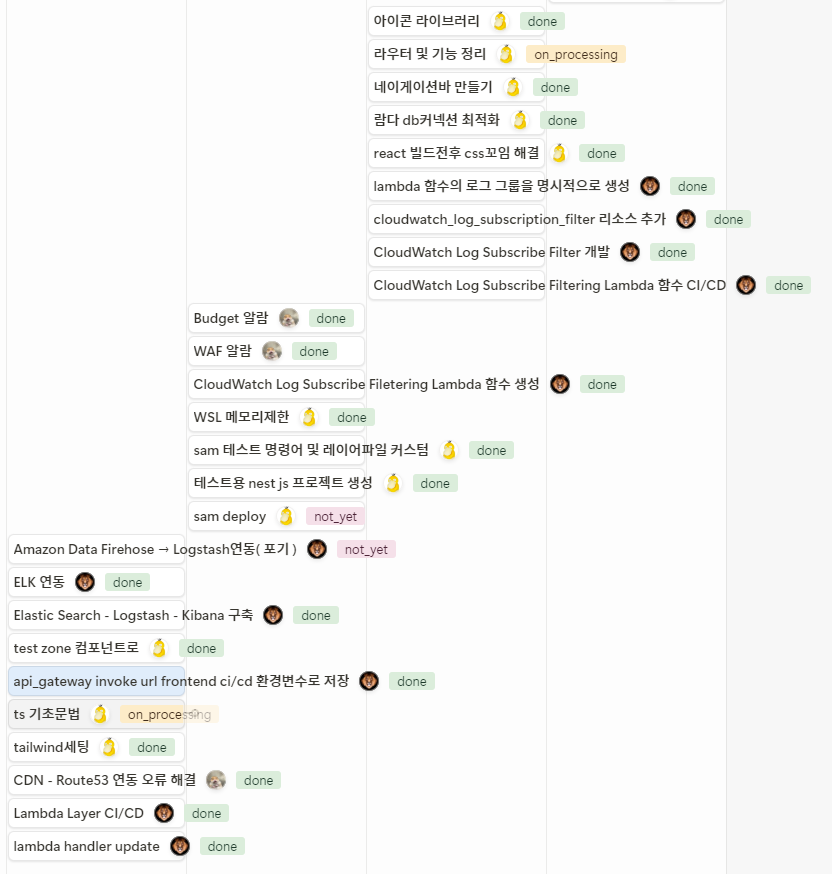 이런식으로 개인마다 task를 정리해서 기록했어요.