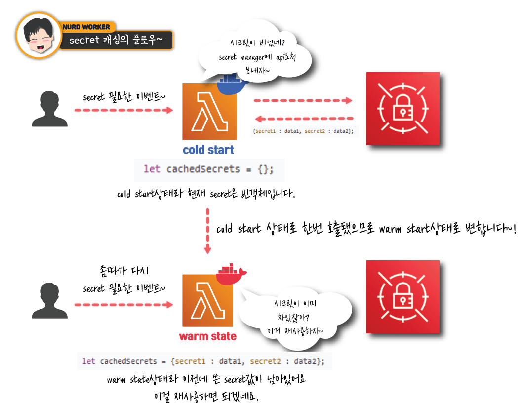 시크릿과 디비 커넥션을 캐싱했어요. 하나씩 나눠서 설명드릴게요