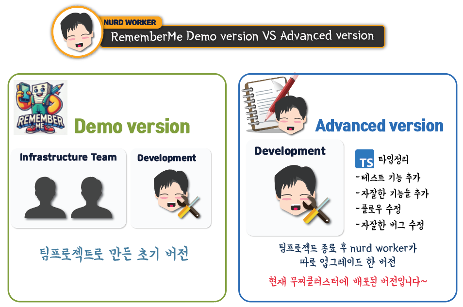 현재 배포된 remember me 프로젝트 advanced버전의 아키텍쳐입니다.