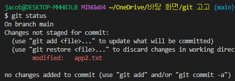 잘보이게 쓰려면 git difftool누르면됨. q누르면 나가진다는데 난 cntl+c누르면 나가짐