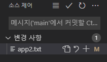 왼쪽 탭에 깃클릭해서 작업트리 변경전 변경후 볼 수 있음.