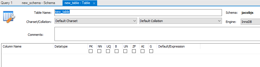 CREATE SCHEMA `jacobjs` DEFAULT CHARACTER SET utf8 ; (데이터베이스 생성)