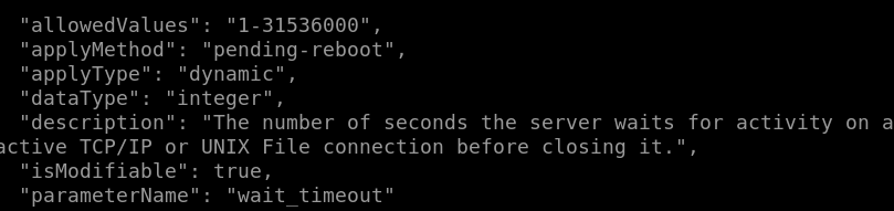 이후로 파라미터 설정에 parameter name이 wait_timeout인것을 찾아보면