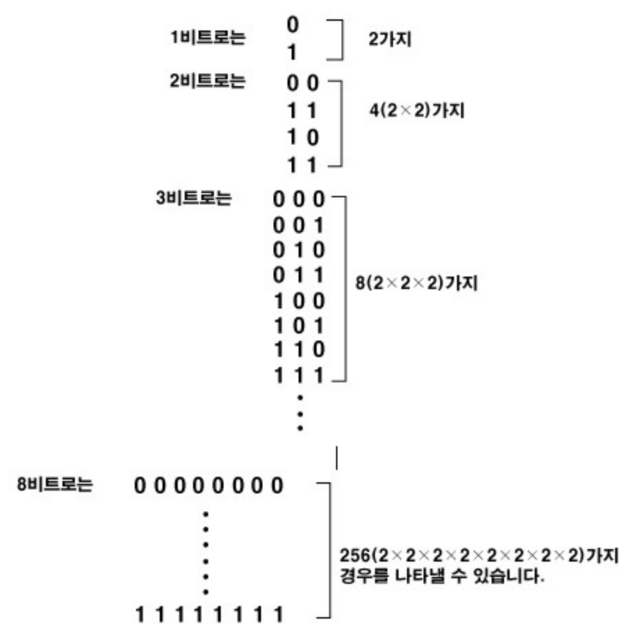 컴퓨터에선 메모리 주소 기본단위에 0이나 1을 저장할 수 있는데, 이 기본단위를 '비트'라고 한다.