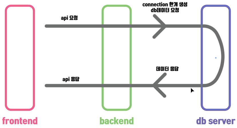 저 위 그림에서 백단에서 db서버에 요청을 보낼때 connection 한개 생성이라고 보이듯이,