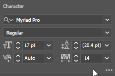 프로퍼티 패널안에 캐릭터에서 자간 수정가능