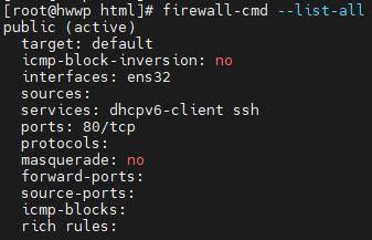 ens32인터페이스로 연결되어있고 이곳은 public 이라는 영역이다.