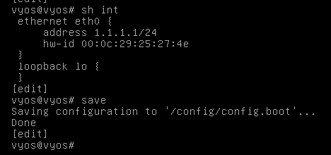 현재 인터페이스 상태에는 eth0에 1.1.1.1/24아이피만 부여되어 있다. 이 상태에서 save를 하겠다.