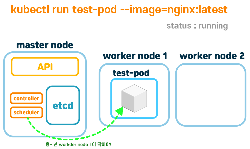 스케줄러는 파드를 어느 node에 띄울지 선택하고 띄워준다.