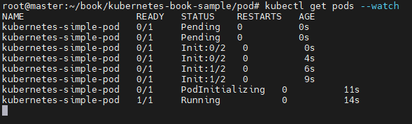 이렇게 처음 pending상태였다가, init container를 생성하려고한다.