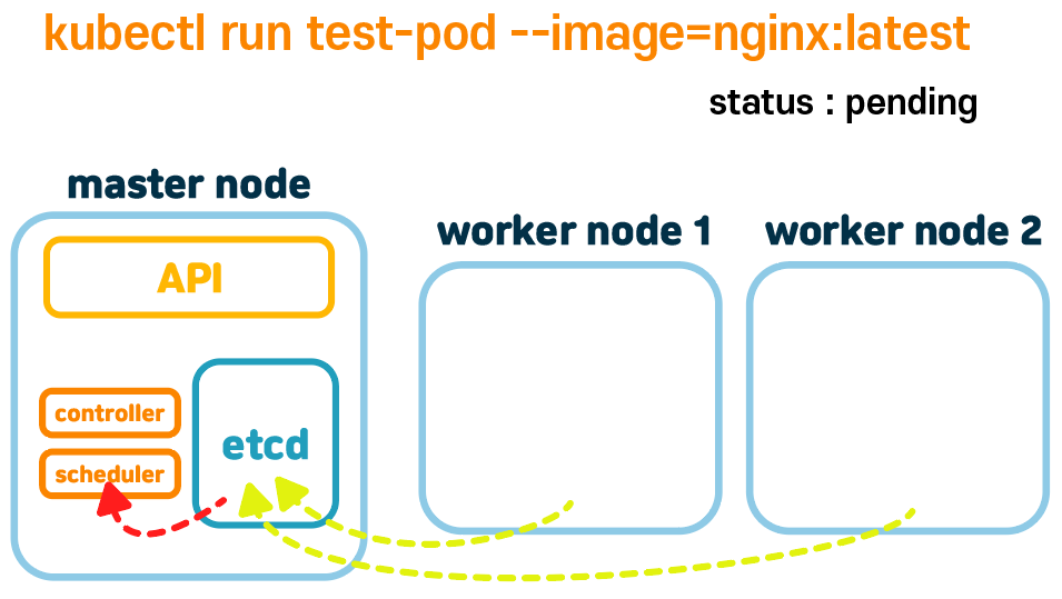pending상태까지 마스터노드에서 이것저것 일어나다가