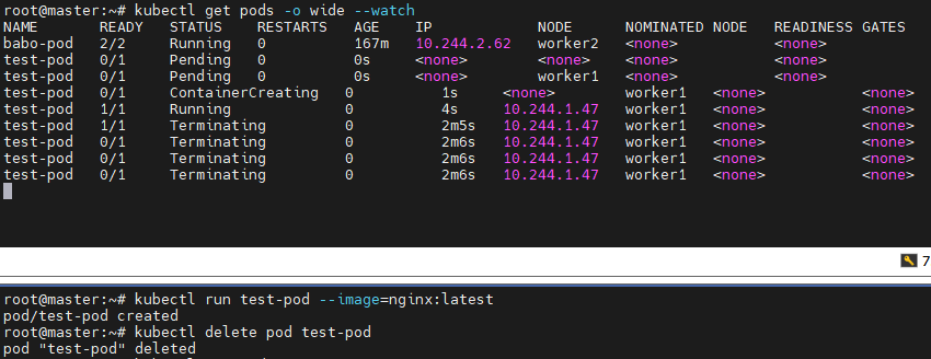 test-pod가 pending상태였다가 containercreateing상태가 되었다가