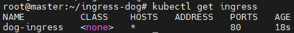 아까 host를 dog.com으로 정해줬던 ingress yaml대신, 그냥 rules필드에 http로 시작하는 yaml로 ingress를 생성해보았다.