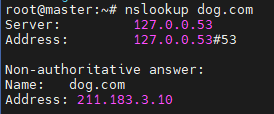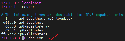 저기 마스터노드 ip 211.183.3.10을 dog.com으로 해줬다.