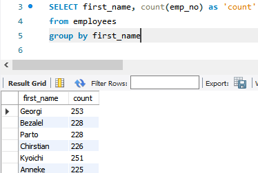 행 몇개야~ first name의 갯수로 했는데 모든 row가 다 first name이 있으니 걍 모든행임