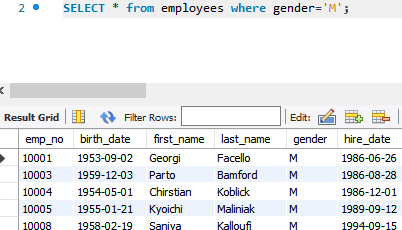 메인쿼리의 gender부분과 서브쿼리의 select부분이 같아야한다.