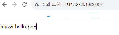 내용은 muzzi hellp pod라고 되어있다. 이걸 nodePort서비스에 연결된 deployment에 만들거다.