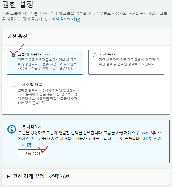 암튼 사용자 그룹생성 버튼을 누르면,