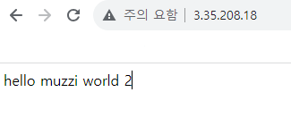 브라우저에서는 hello muzzi world 2가 뜨고 멈추는데 아무래도 캐시때문인것 같다.
