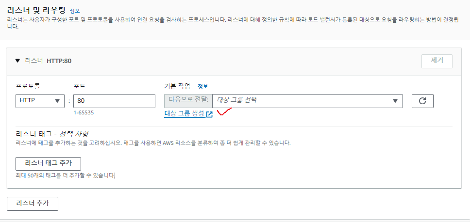 때문에 저기 '대상 그룹 생성'이라는 링크를 클릭해서 만들어주자.