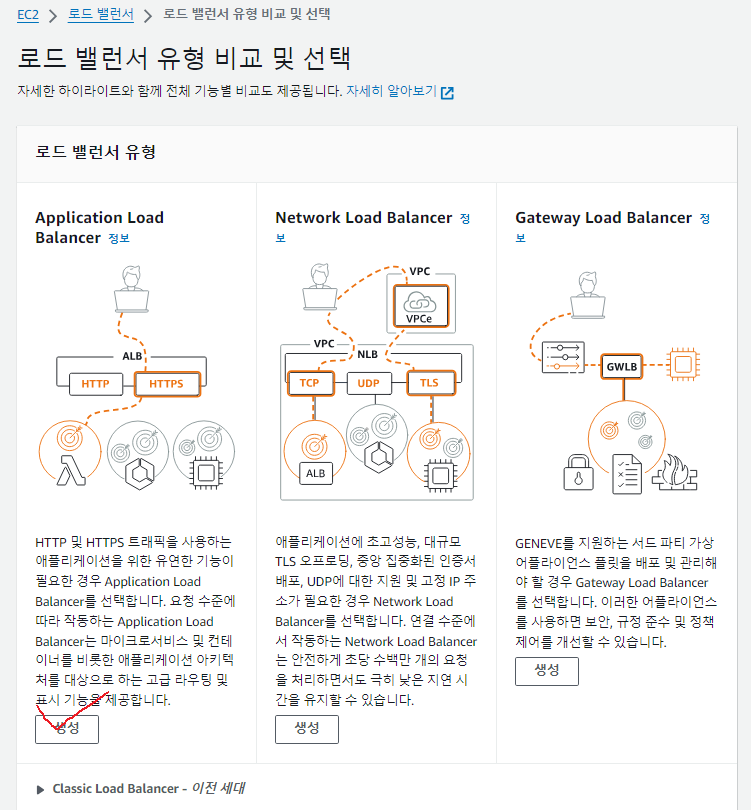 사실 Network Load Balancer을 선택해도 만드는 방법은 크게 차이는 없다.