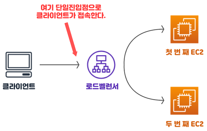 일반적으로 로드벨런서가 없으면 한 인스턴스에 트래픽이 몰려서 부하가 생기고 서버가 터져버리지만, 로드벨런서가 있고 같은 기능을하는 EC2 인스턴스가 두 대가 있다면 이 트래픽을 반반으로 나눠 보내주기떄문에 서버가 터지지 않는다.