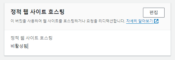 정적웹사이트 호스팅이 비활성화 되어있다. '편집' 버튼을 누르자.