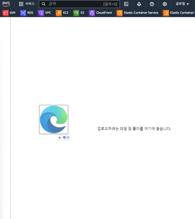 버킷이 비어있다. 여기에 바탕화면에서 원하는 파일을 끌어와서 넣으면 된다.