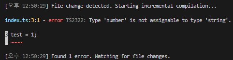 타입 지정을 안한 test라는 변수 식별자에 숫자타입을 갖다넣으면 에러가 뜬다.