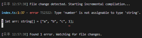 let arr: string[] = ["a", "b", "c", 1];