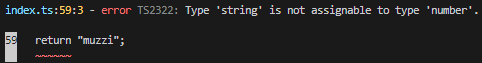 리턴값이 number이어야 하는데 string 인 'muzzi'가 나왔다고 에러를 띄워준다