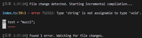 test 타입에 void로 타입넣고 거기에 muzzi라는 스트링을 재할당하려고 하면