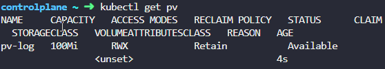 지금 있는 pv중에 제일 적절한거 쓴건데 용량만 100Mi짜리 하나있으니 저걸 갖다 쓴거임
