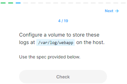 현재 host의 /var/log/webapp에 로그들이 쌓이게 스토리지를 만들라고 함.