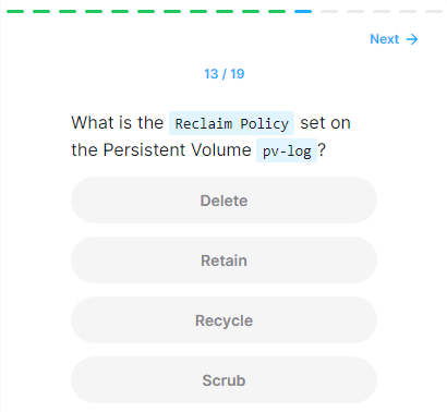 - reclaim policy는 pv가 이제 사용안되면 남아있는 자료를 어떻게 처리할거냐에 관점을 둔거임. retain은 그냥 pv남겨두고 나중에 재사용 하게 할거라는거고 delete는 자료 싹다 지워서 바로 available상태로 전환한다는거임. retain으로 할경우 pv는 released상태로 남음