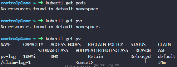pod랑 pvc는 지워지고 pv는 released상태됨.